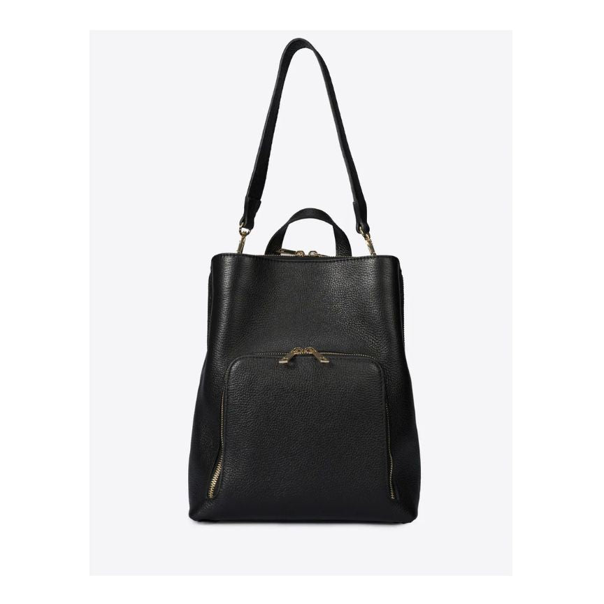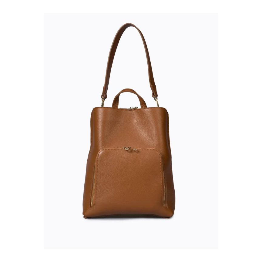Funktionaler Damen Lederrucksack mit durchdachtem Design. Mit Fronttasche für schnellen Zugriff auf Handy & Geldbörse, zwei Fächern, Reißverschluss- und Magnetverschluss, Henkel und Schultergurt - ideal für Alltag, Reisen und Stadt.