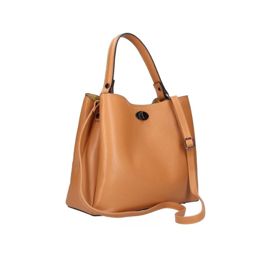 Diese mittelgroße Henkeltasche aus echtem Leder überzeugt durch ihr edles Design und ihre hochwertige Verarbeitung. Der Schnallenverschluss verleiht ihr einen klassischen Look, während die praktischen Innentaschen für Ordnung im Alltag sorgen.