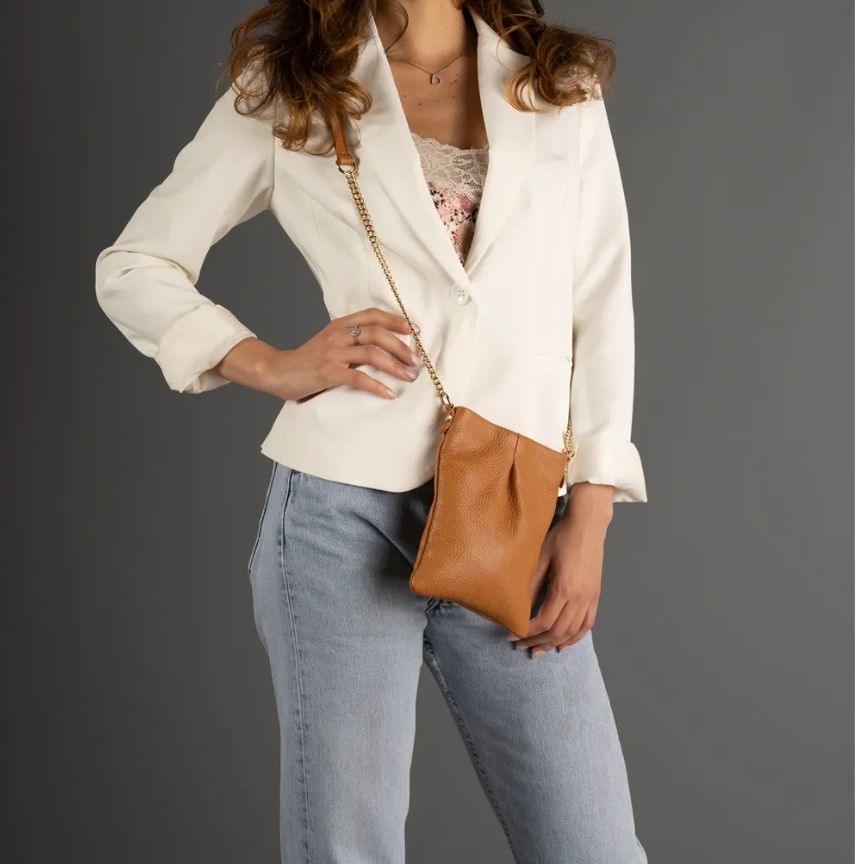 Die Damen Alltagstasche aus Italien besticht durch ihr edles Design und hochwertige Verarbeitung aus 100% Echtleder. Der elegante Kettenriemen verleiht der Tasche einen modernen Touch und macht sie zum stilvollen Begleiter für Alltag, Dinner oder besondere Anlässe. Klein aber funktional - diese Tasche kombiniert italienische Handwerkskunst mit zeitloser Eleganz.
