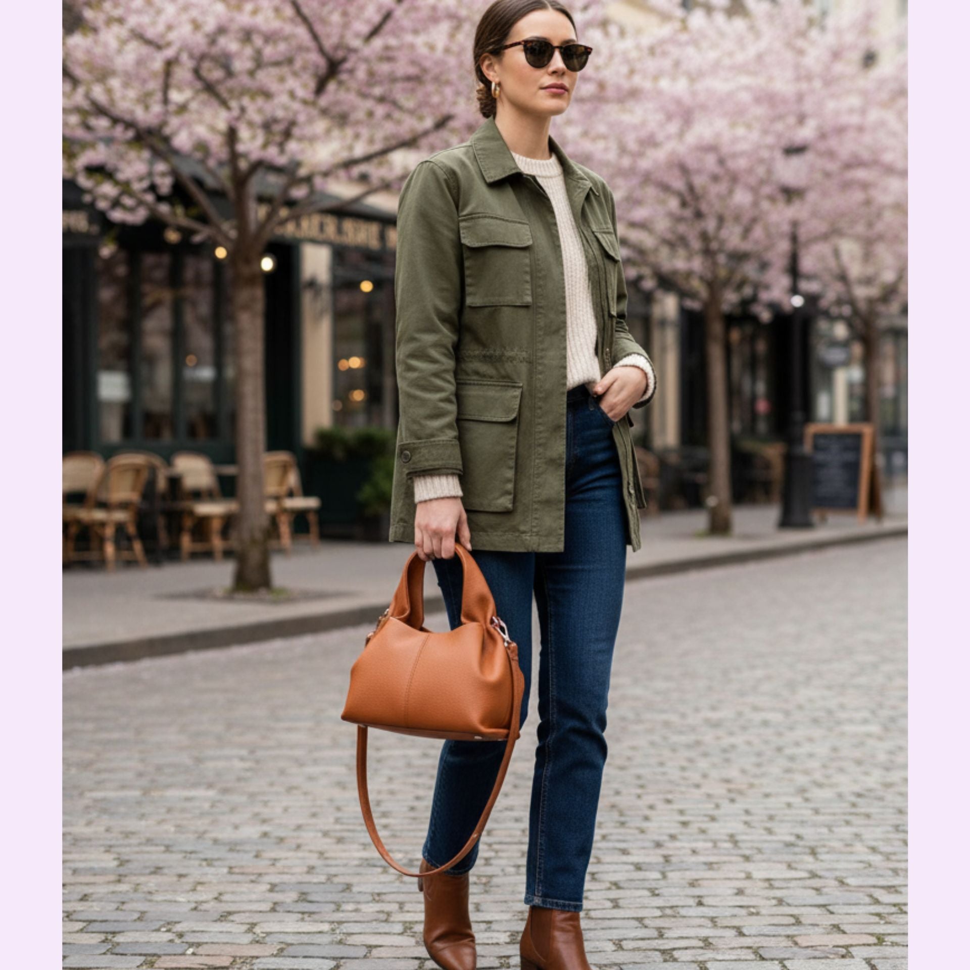 - Kurzer Henkel und langer Schulterriemen - flexibel tragbar